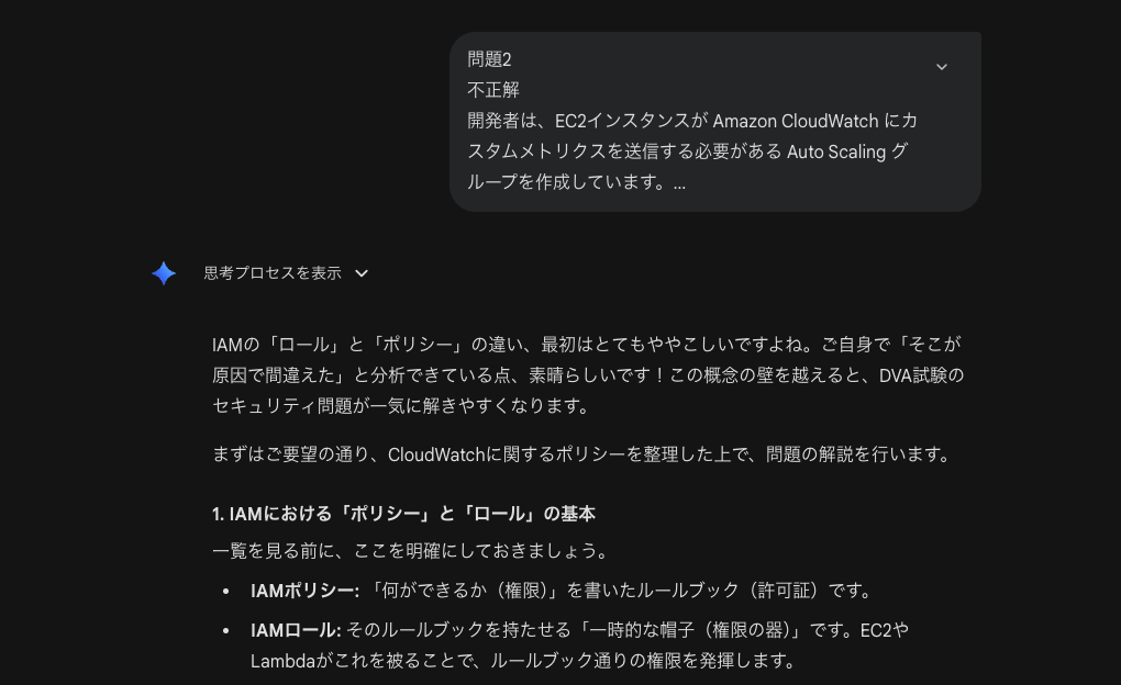 - 間違えた問題・答え・自分の回答を貼って「分かりやすく解説して」の一言で解説してもらう